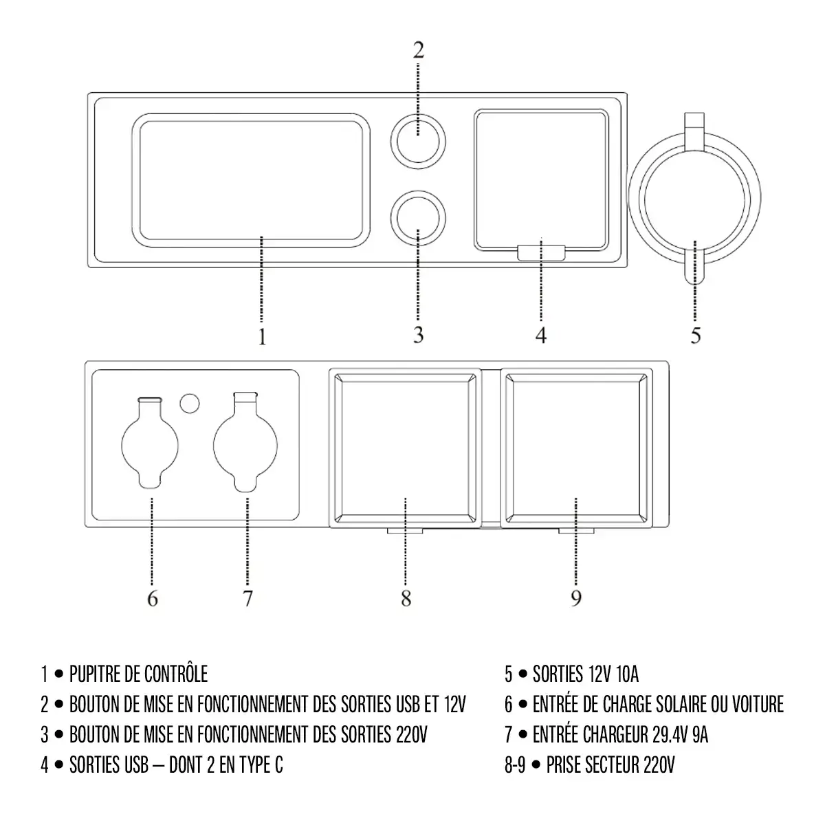 Deux sorties 220VAC 50Hz pur sinus (prise européenne)
